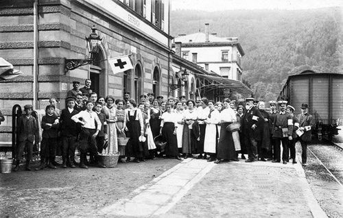 entwickelt. Bereits mit der Mobilmachung hatten Stadtgemeinde und Rotes Kreuz ein Kriegskrankenhaus in der Turnhalle beim Bahnhof eingerichtet. Die Züge mit den Verwundeten liefen immer und immer wieder auf der neuen Neckartalstrecke ein.