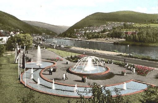 zur Feier "400 Jahre Eberbacher Heilbrunnen" 1010,-- Mark mit Unterkunft in Privatzimmern. Im Hotel untergebracht, zahlte man 1860,-- Mark. Die Indikationsgebiete der Eberbacher Quelle waren rheumatische Erkrankungen, wenn man sich damit in der Badewanne guttat, und chronische Erkrankungen der Atemwege und Störungen des Magen-Darm-Traktes, wenn man sich den einen oder anderen kontrollierten Schluck gönnte.