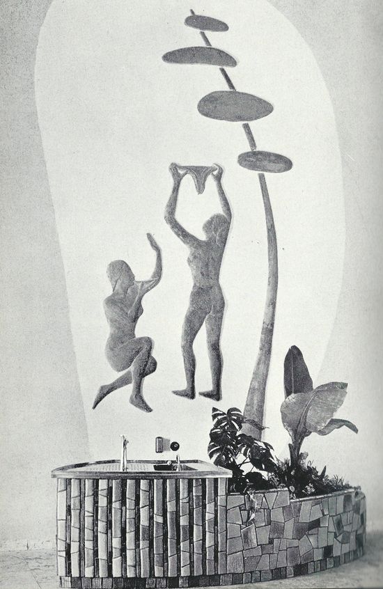 draus. Im Nieren-Stil der 1950er Jahre baute man im luftigen Foyer eine Brunnentheke auf, aus der man das Eberbacher Wasser für Trinkkuren abfüllen konnte.