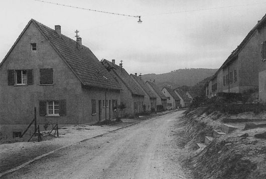 Zu Beginn des Zweiten Weltkrieges hatte die Stadt Eberbach 7 719 Einwohner. Während des Krieges wuchs die Zahl auf rund 9 000 - Evakuierte aus den Großstädten, Fremdarbeiter, allgemeiner Zuzug. Mehr Wohnraum gab es deswegen nicht. In den letzten Kriegswochen wurden sogar fast 200 Wohneinheiten bei Bombenangriffen zerstört. Die Amerikaner beschlagnahmten als Besatzer zudem teilweise noch bis zu 200 Häuser. In Eberbach herrschte 1946 also Wohnungsnot. 11 227 Menschen brauchten in jenem Jahr eine Bleibe, noch nicht zurückgekehrte Soldaten eingerechnet. Eberbach war gegenüber dem Kriegsbeginn um rund 45 Prozent gewachsen.