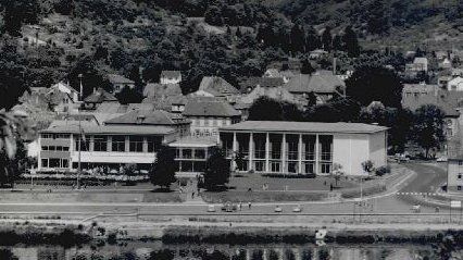 Die Eberbacher Stadthalle wurde vor 60 Jahren eingeweiht – Kurhaus mit Heilquellen-Wasser – Heute im Park versteckter Zweckbau